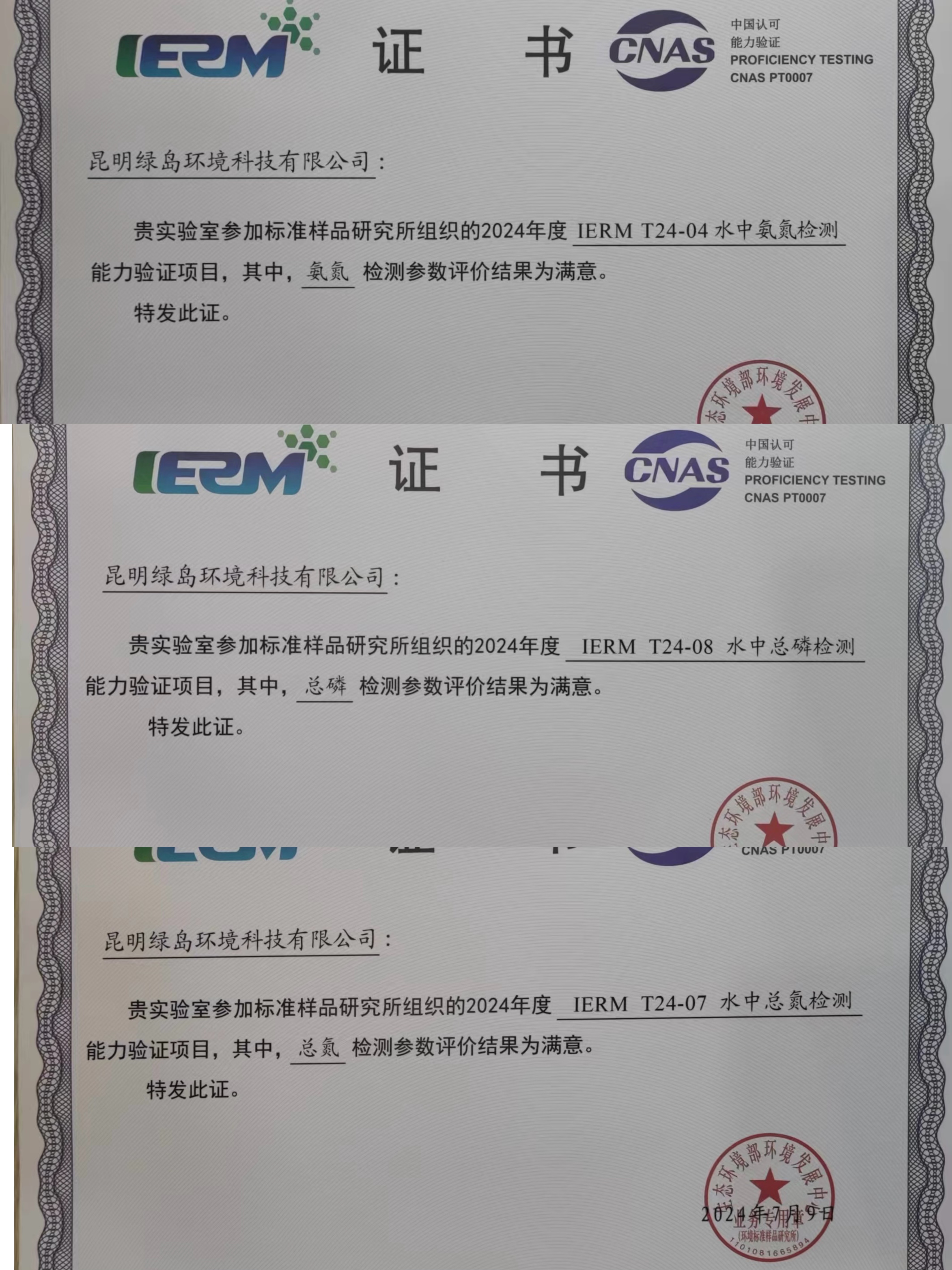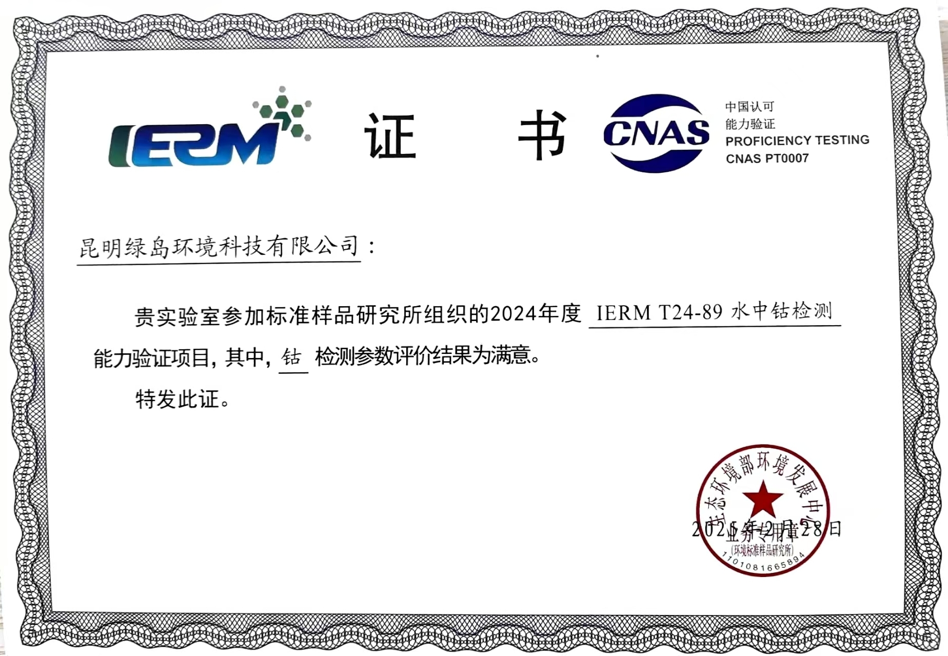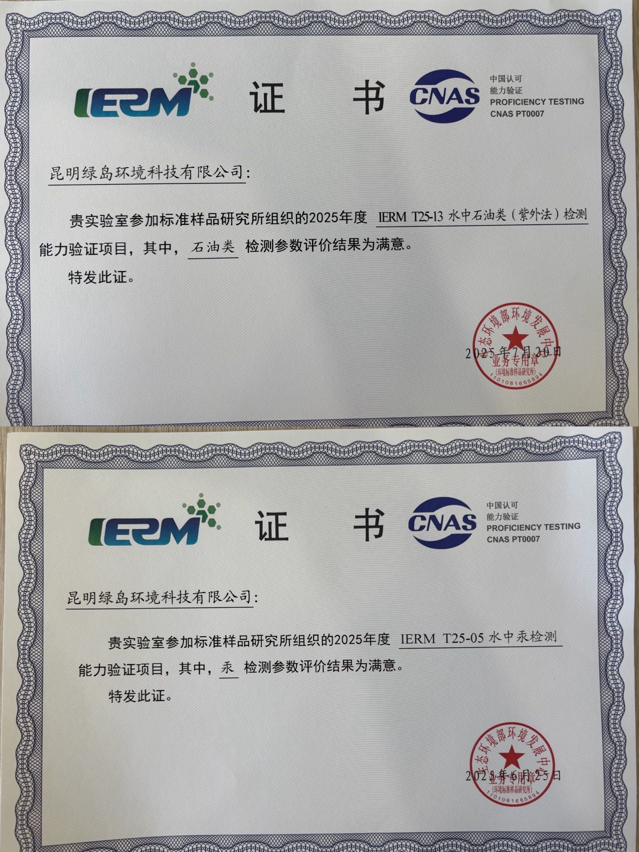 強化能力建設 夯實發(fā)展根基(三) ——昆明綠島環(huán)境科技有限公司喜獲2項能力驗證證書