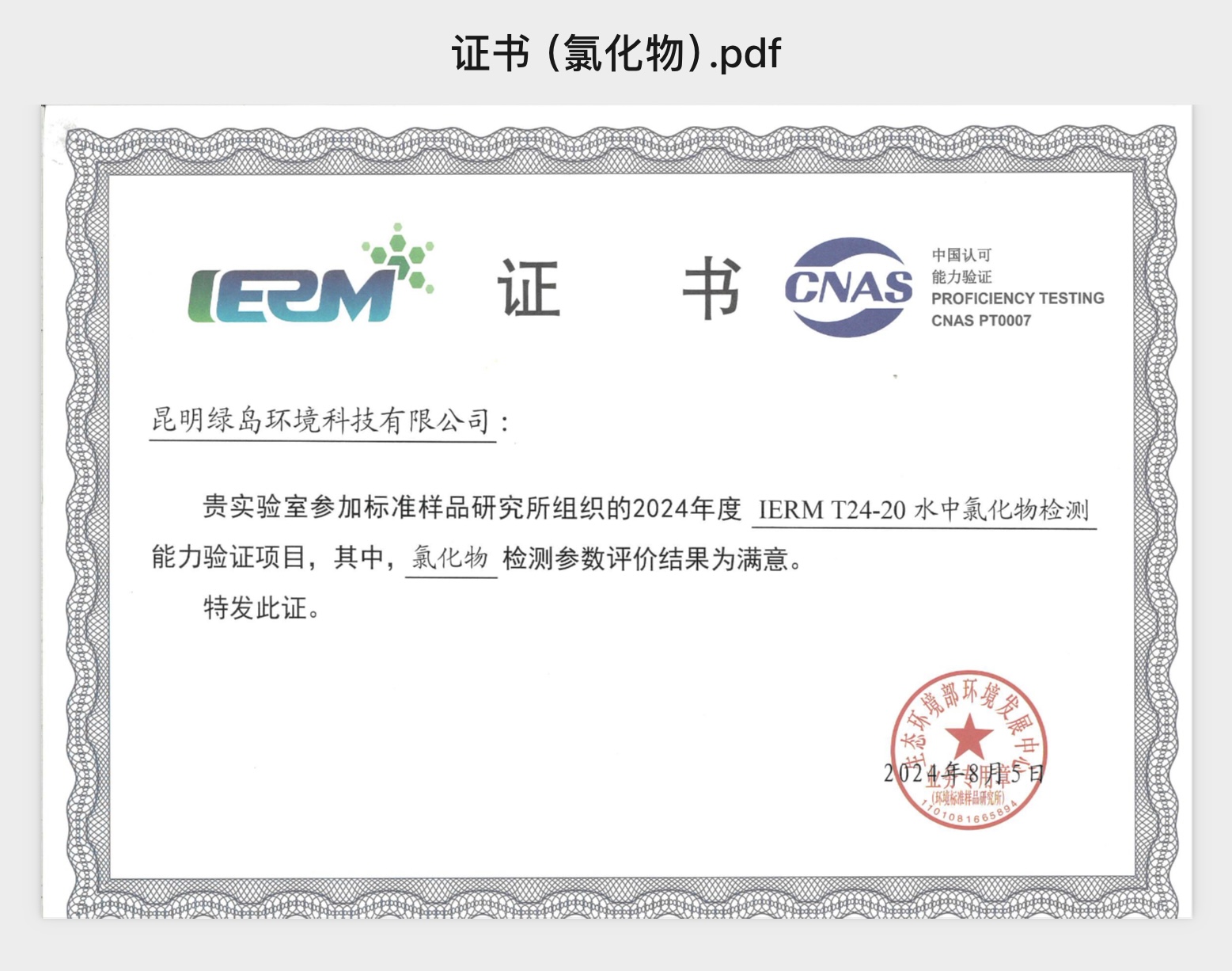 強化能力建設 夯實發(fā)展根基(五) ——昆明綠島環(huán)境科技有限公司喜獲2項能力驗證證書